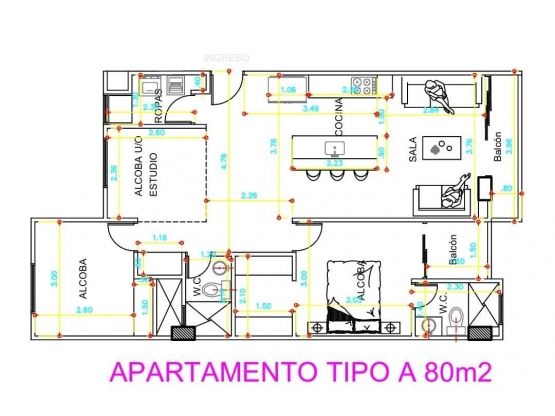 Apartamento para entrega en 2026,Cuenta con un Área de 80mtrs2,1 Alcoba Principal con Baño,Balcón y Vestier,1 Alcoba Auxiliar,Baño Social,Estudio,Sala Comedor,Cocina Integral Abierta,Zona de Ropa Independiente,Balcón,Parqueadero Cubierto y Cuarto útil.