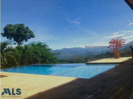 Ubicada en Sopetrán Antioquia - vereda el Llano de montaña a 8 minutos del parque principal, cuenta con vías de fácil acceso, clima cálido ideal para disfrutar en familia y amigos, tiene piscina sin fin con vista hermosa a montañas, cuenta con 3 habitaciones cada una con baño y vestier + alcoba de servicio (aire acondicionado y ventiladores) cuenta con una cocina amplia y de concepto moderno y unas amplias zonas verdes con una vista panorámica espectacular. Servicio de gas, acueducto de agua potable, alcantarillado, 2 aguas de riego, árboles frutales, jardines y árboles nativos. Administración $ 190.000. Precio de venta $ 1.600.000.000